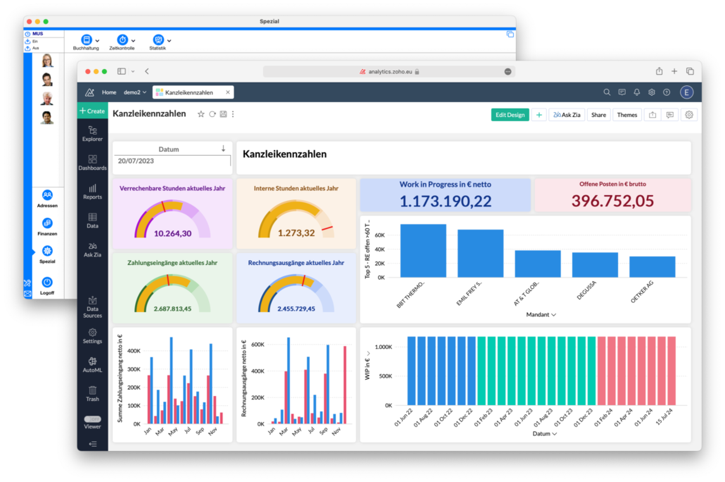 Intégration de la Business Intelligence et facturation automatisée – pour des décisions basées sur les données et une facturation efficace en un clic.
